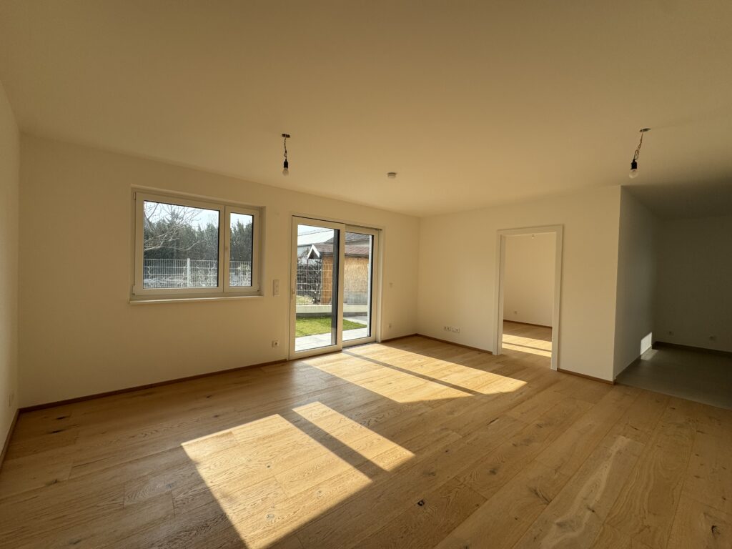 Gartenwohnung – 2 Zimmer plus Küche 54 m2 – Neubau 2024 – Erstbezug. Miet-Kauf-Objekt mit 50% Anrechnung der Nettomiete bei Ankauf Fakten ddd Baujahr: 2024 Wohnnutzfläche: 53,78 m2 Zimmer: Wohnzimmer, Schlafzimmer, Küche, Vorraum & Bad Kelleranteil: 11,59 m2 Außenflächen: Terrasse 14,43 m2, Garten 21,48 m2 Miete: € 1228,15 inkl. BK & Steuern Befristung: 5 Jahre…