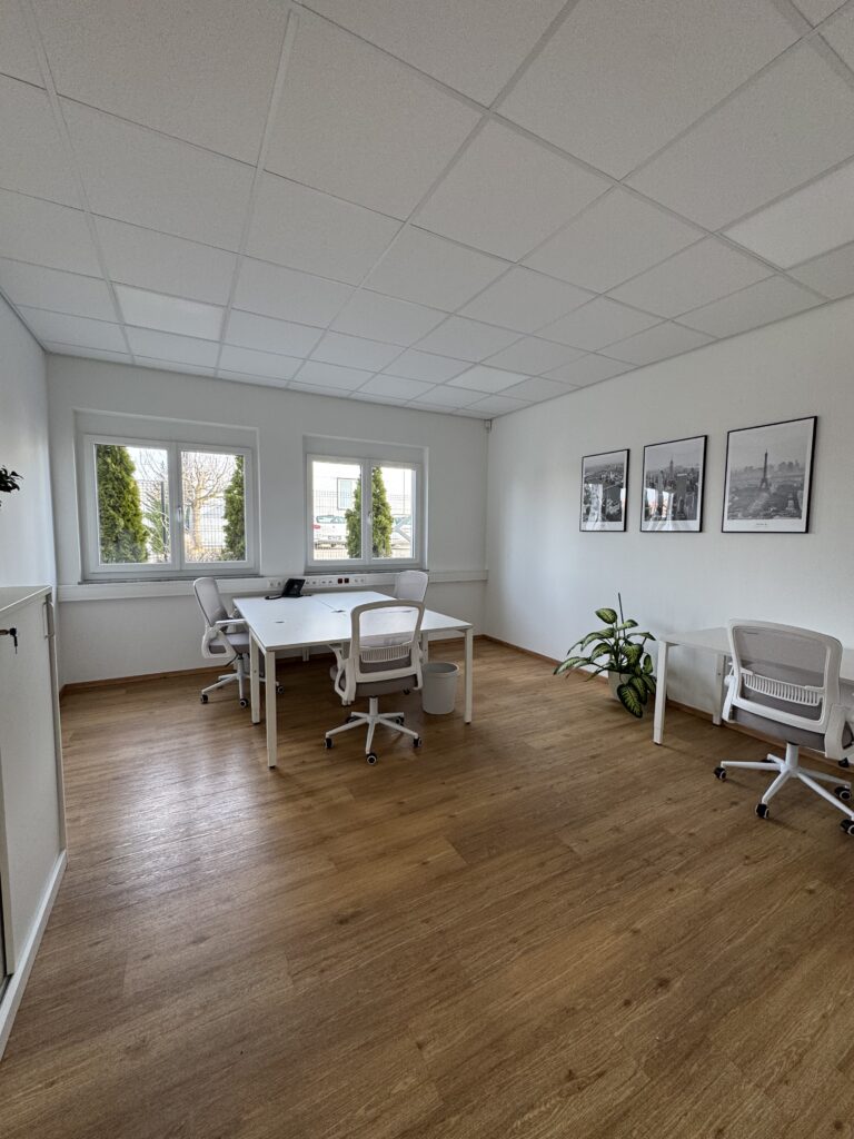 Möbliertes Büro für bis zu 4 Personen, flexible Bindung möglich, Mitnutzung des Allgemeinflächen & Küche. KEINE INVESTITIONSKOSTEN! Fakten ddd Größe: 21 m2 Arbeitsplätze: bis zu 5 Personen Stockwerk: EG Ausstattung: Schreibtische, ergonomische Stühle, Schränke verschliessbar Parkplätze: optionale Anmietung für € 30.- netto/Monat möglich Miete: € 680.- netto/Monat Privatbüro / € ab 399.- netto/Monat Arbeitsplatz…