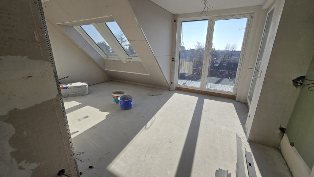 2. Dachgeschoss – 4 Sonnenterrassen mit Fernblick – 2 Zimmer – Neubau/Erstbezug – schlüsselfertig mit hochwertiger Ausstattung. Fertigstellung Winter 2025. Fakten ddd Baujahr: 2024/25 Wohnnutzfläche: 56.68 m2 Zimmer: Wohnküche, Schlafzimmer, Vorraum & Bad Kelleranteil: 1.75 m2 Terrassen: 23.75 m2 Kaufpreise: KP Eigennutzer € 349.000,- plus NK / KP Anleger € 332.955 zzgl. 20% USt.…