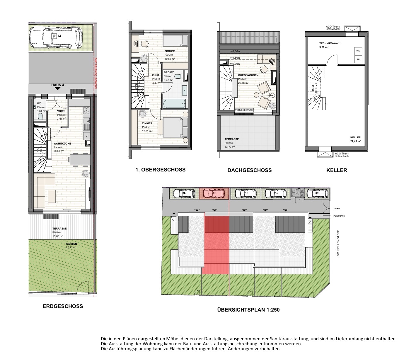Jedes Haus verfügt über einen Eigengarten & eine Dachterrasse.