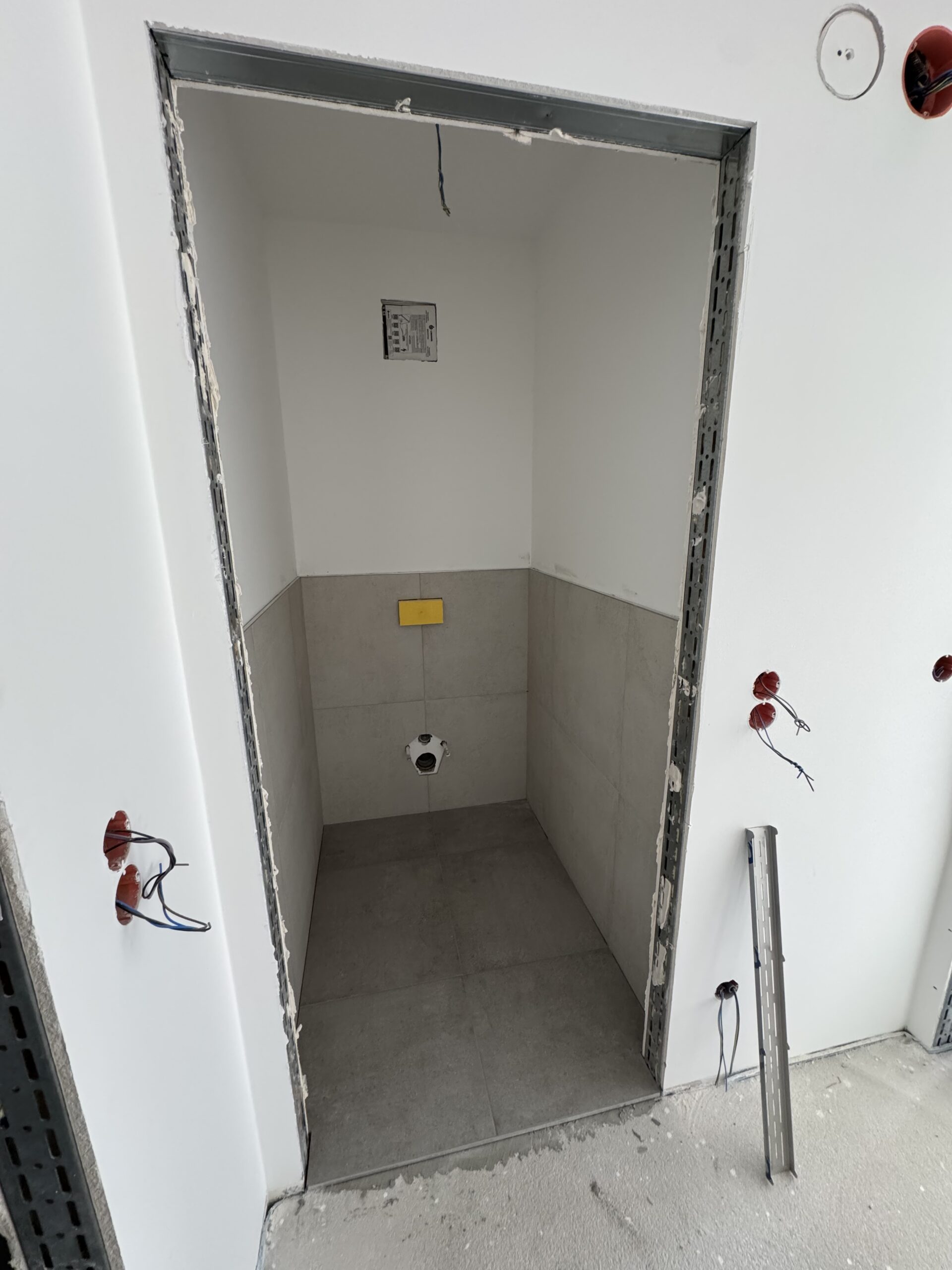 Vorräume, Badezimmer und WC´s werden mit Feinsteinzeug Minimum Größe 60x60 cm ausgestattet.