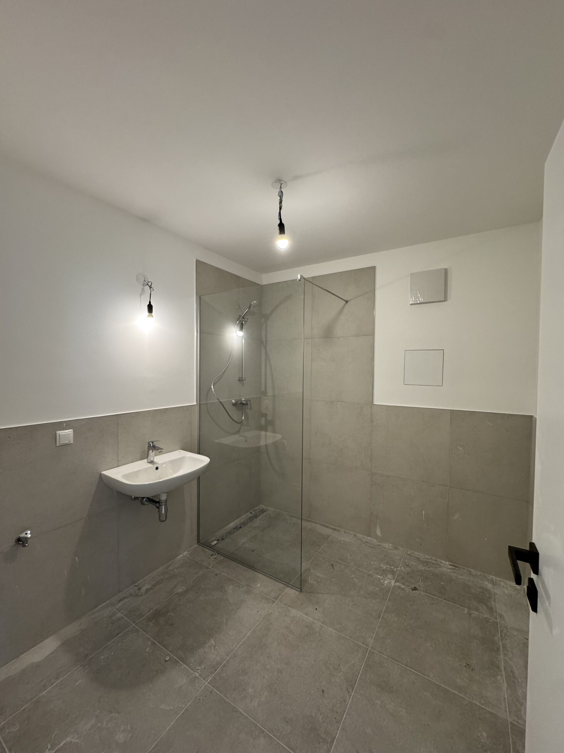 Vorräume, Badezimmer und WC´s werden mit Feinsteinzeug Minimum Größe 60x60 cm ausgestattet.