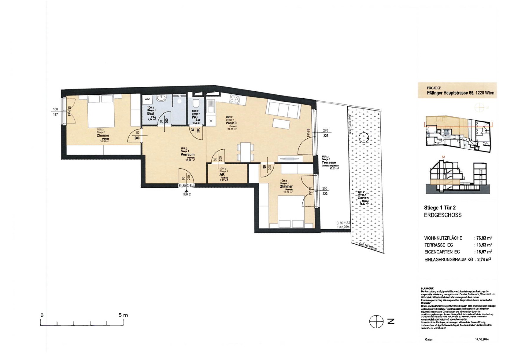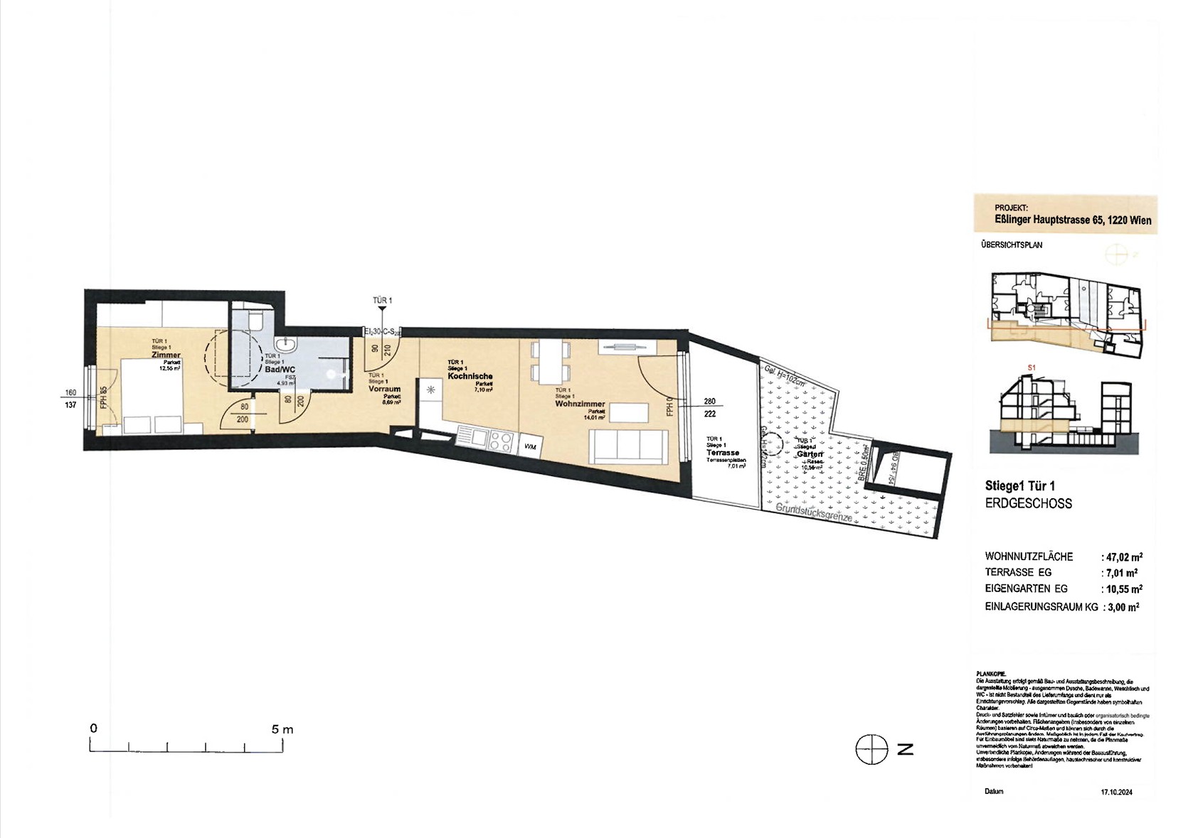 WNFL ca. 47.02 m² / Terrasse-Garten ca. 17.56 m²,