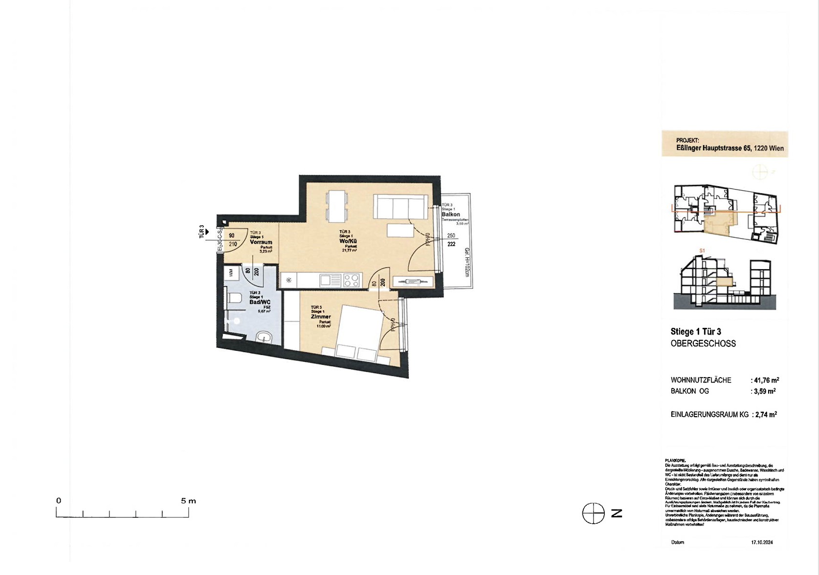 WNFL ca. 41.76 m² / Balkon ca. 3.59 m²,