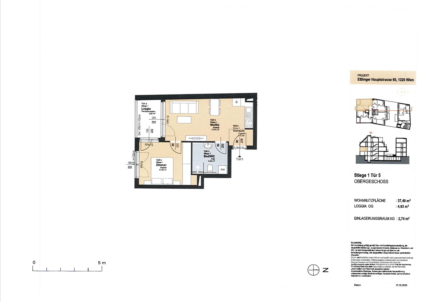 WNFL ca. 37.40 m² / Loggia ca. 4.93 m²,