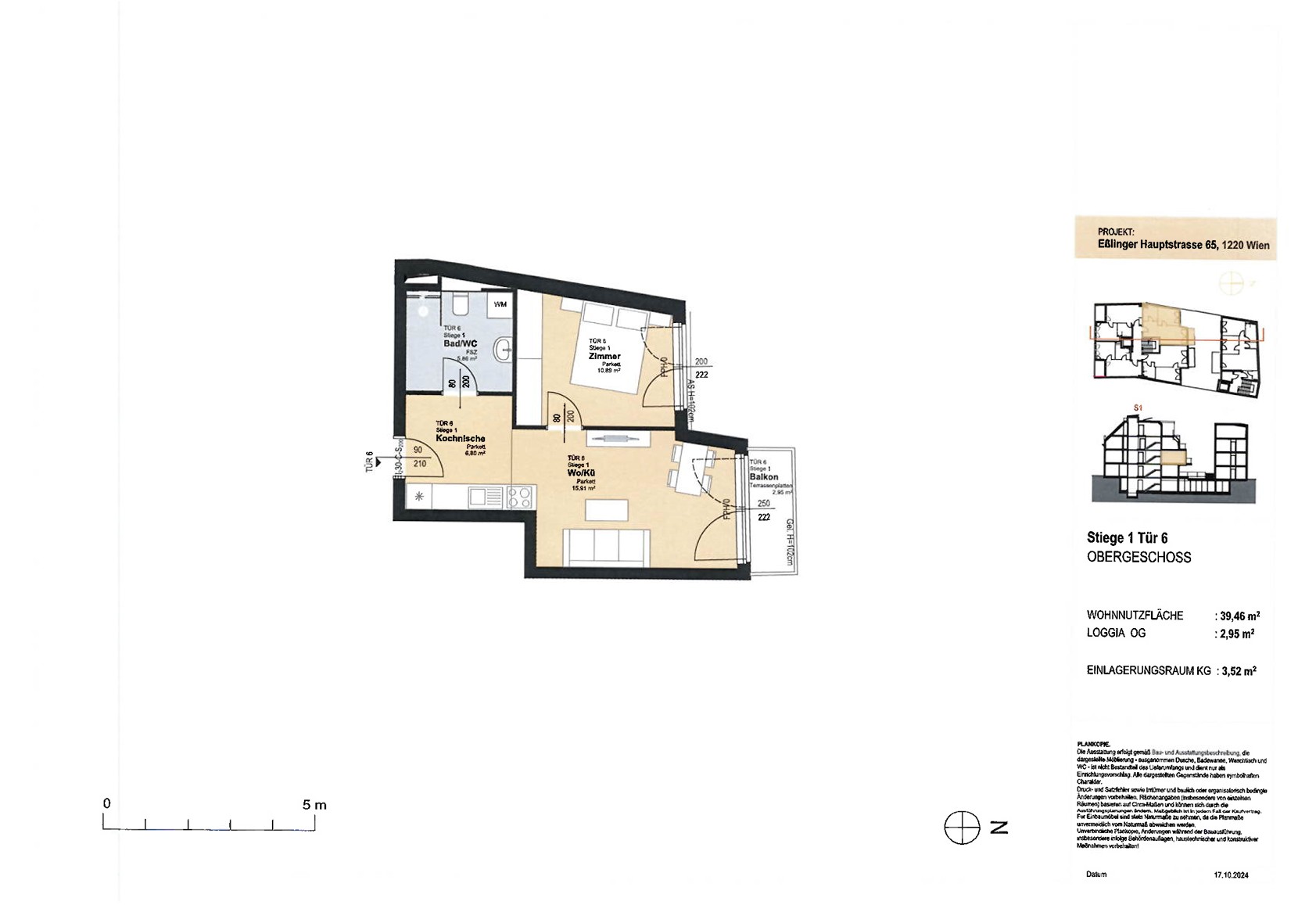 WNFL ca. 39.46 m² / Balkon ca. 2.95 m²,