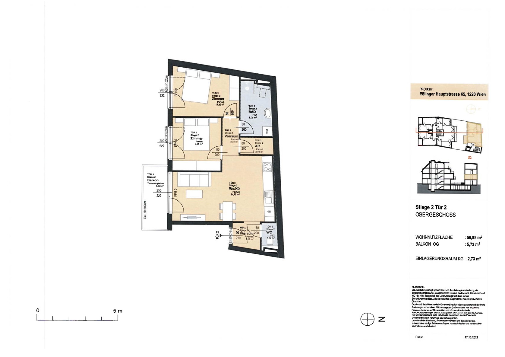 WNFL ca. 56.98 m² / Balkon ca. 5.73 m²,