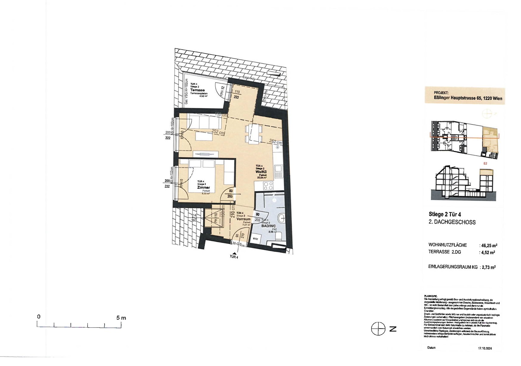 WNFL ca. 46.25 m² / Balkon ca. 4.52 m²,