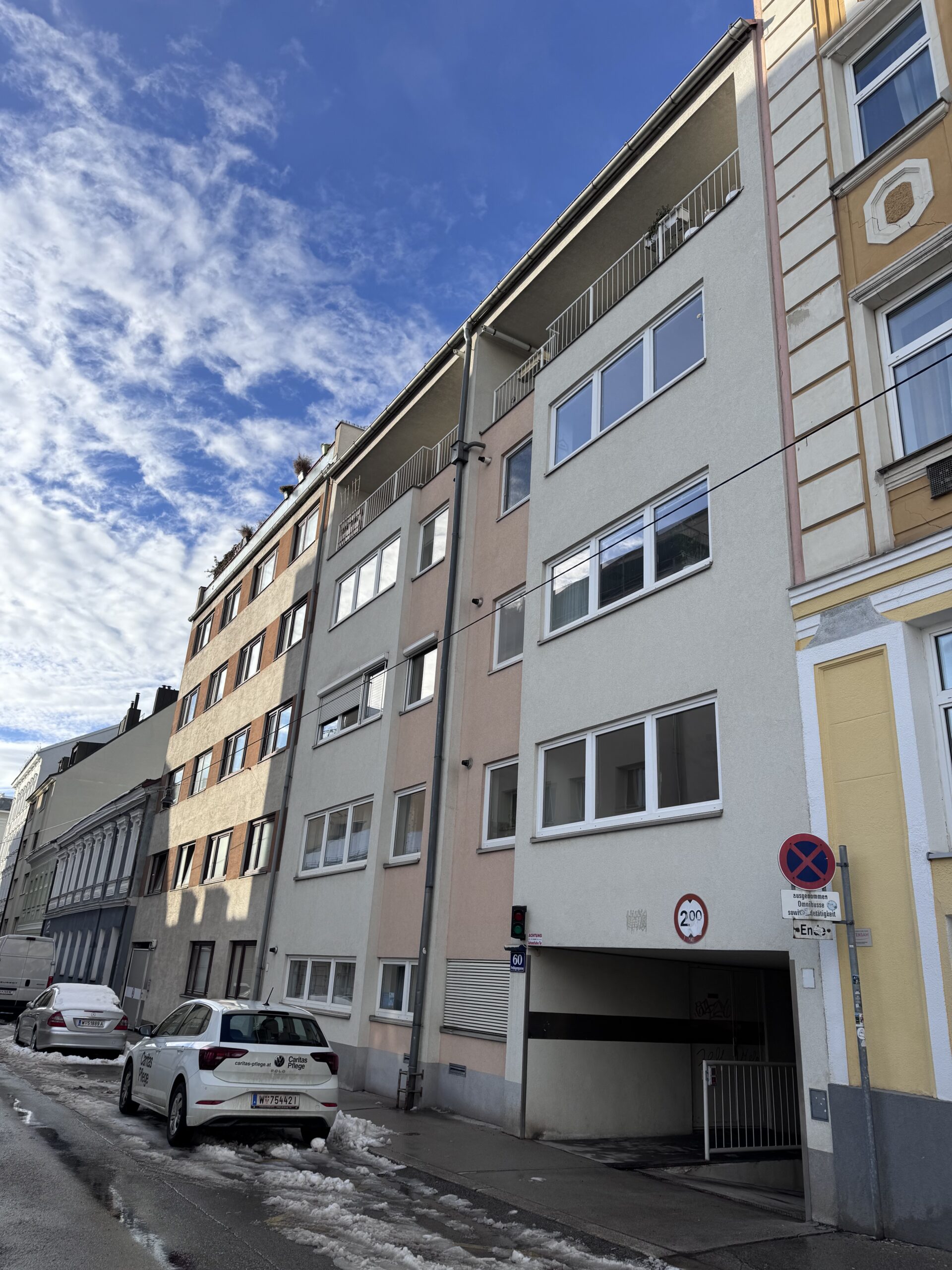 Das Gebäude in der Felbigergasse 60 verfügt über eine Tiefgarage mit insgesamt sieben Stellplätzen. Der Stellplatz Nr. 7 gehört im Wohnungseigentum zur Wohnung Top 8 und steht untrennbar mit der Wohnung zum Verkauf. Die Tiefgarage als auch der Stellplatz selbst ist geräumig und bietet ausreichend Platz zum Ein-/Ausfahren und rangieren.