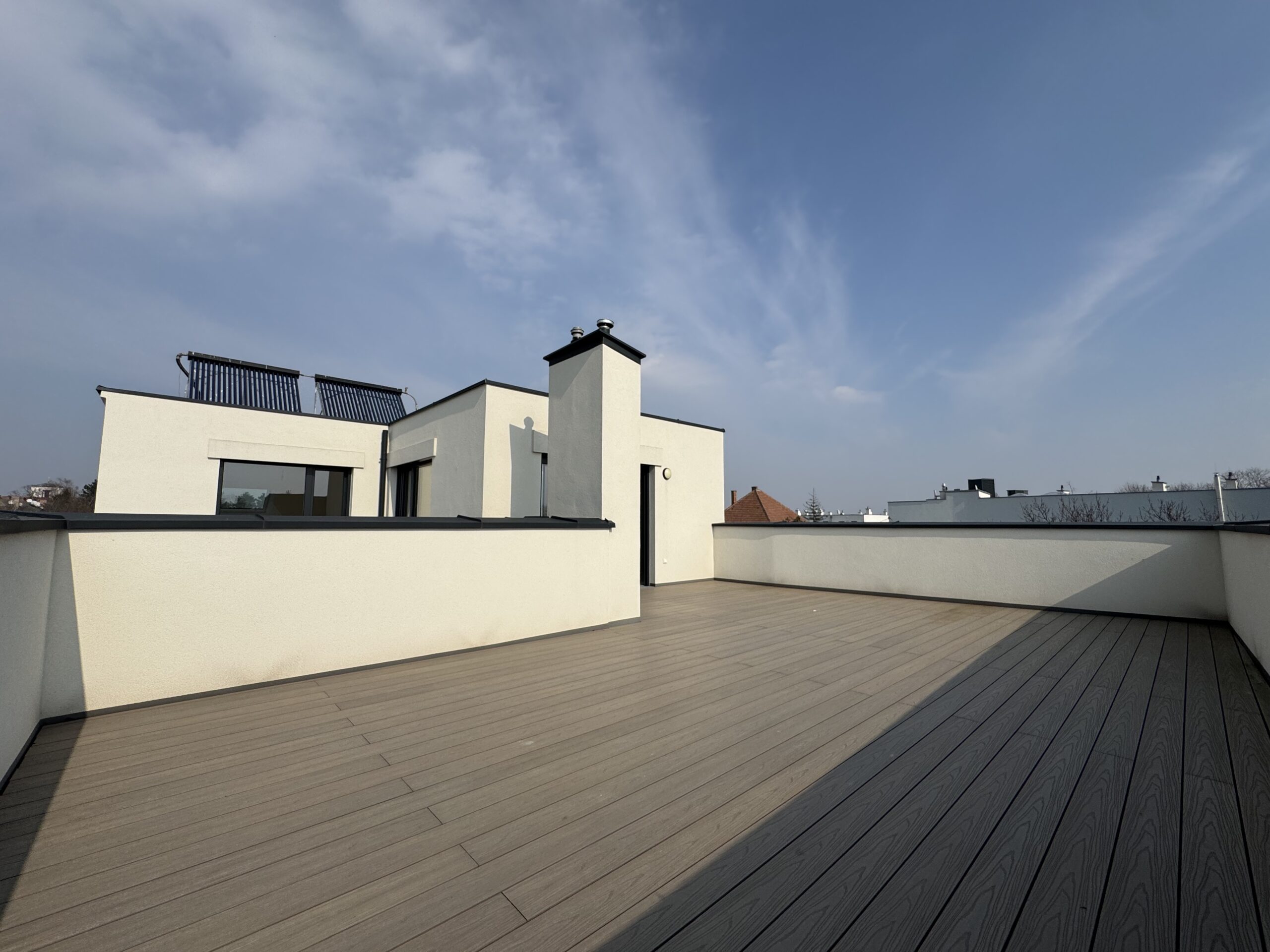 Maisonette Wohnung ca. 110 m2 - 3 Zimmer, Wohnküche, 2 Bäder & Gäste WC - uneinsichtige Dachterrasse 59 m2 - Neubau 2024 - Erstbezug - nahe Kirschenallee & Nationalpark Lobau