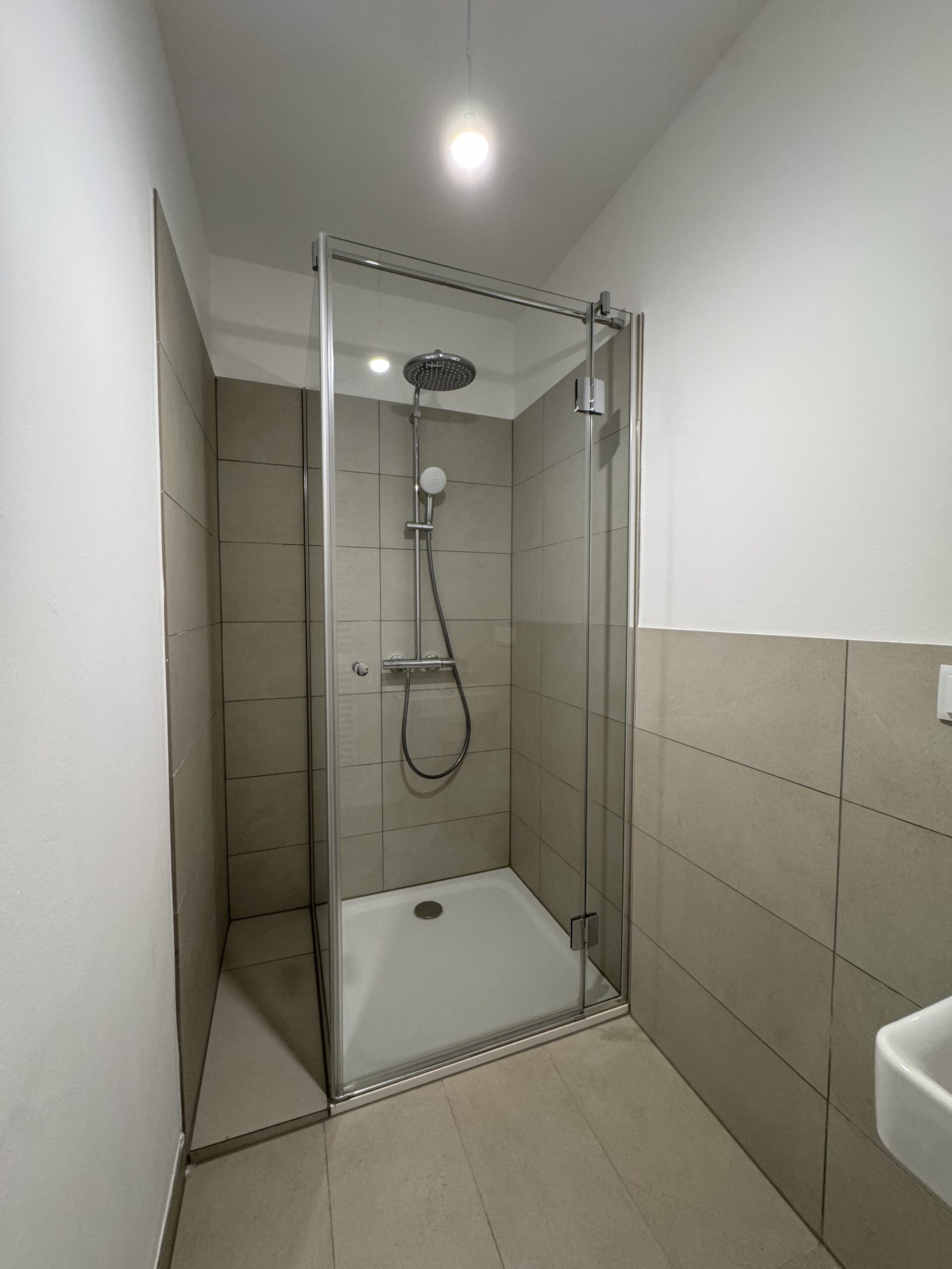 Die Wohnung hat einen großzügigen Eingangsbereich, ein Bad mit Dusche, ein separates WC und einen Abstellraum mit Anschluss für die Waschmaschine / Trockner. Alle Feuchträume sind mit einem elektrischen Lüfter ausgestattet.